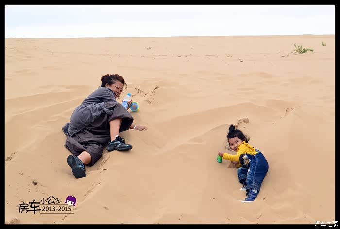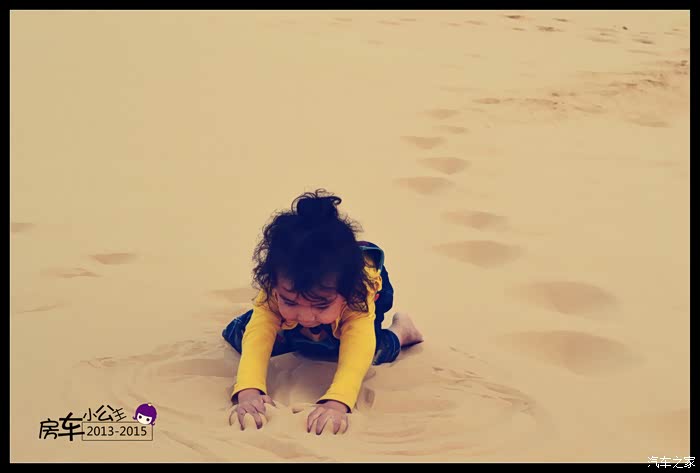 骑马绕了一圈回来之后,一家人一起步行前往沙漠深处,诺诺最喜欢玩沙了,走几步就坐下来玩一会,走走停停,爬上爬下,大家也都没觉得累。沙子很细很细,后来我们都拎着鞋,光脚走在沙子上,很享受。