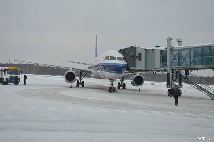乘坐南航班机抵达长白山机场。