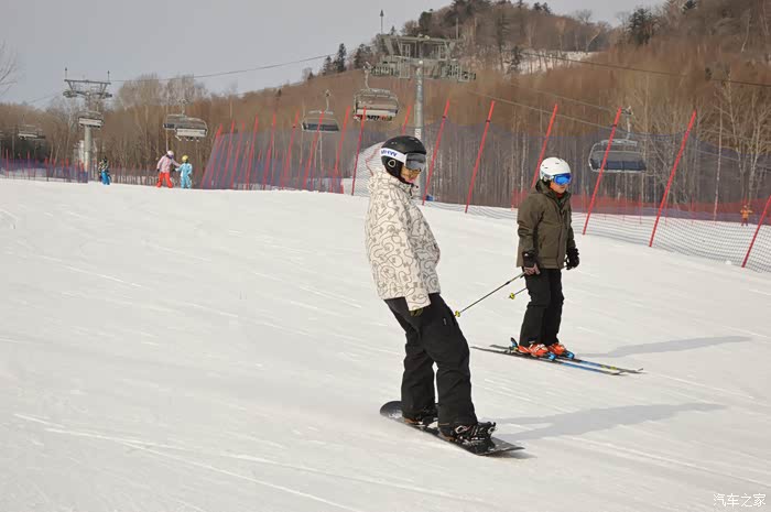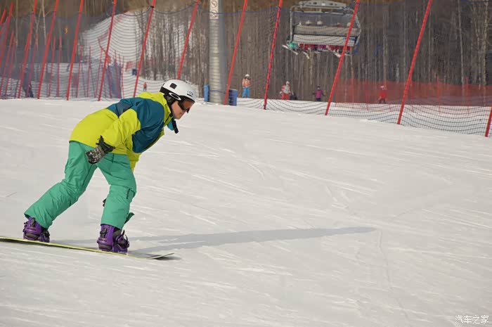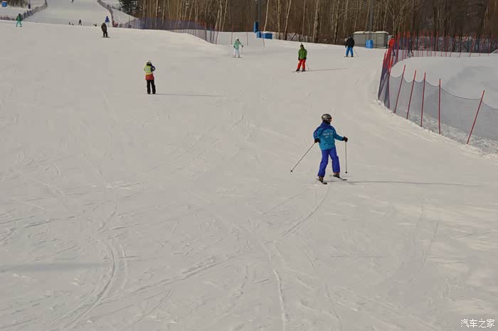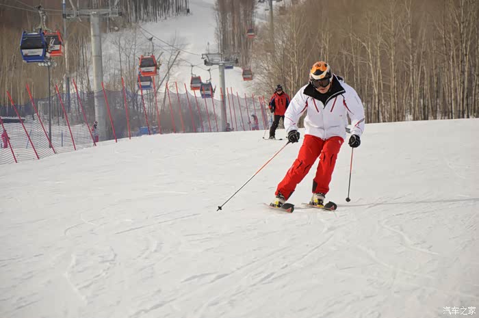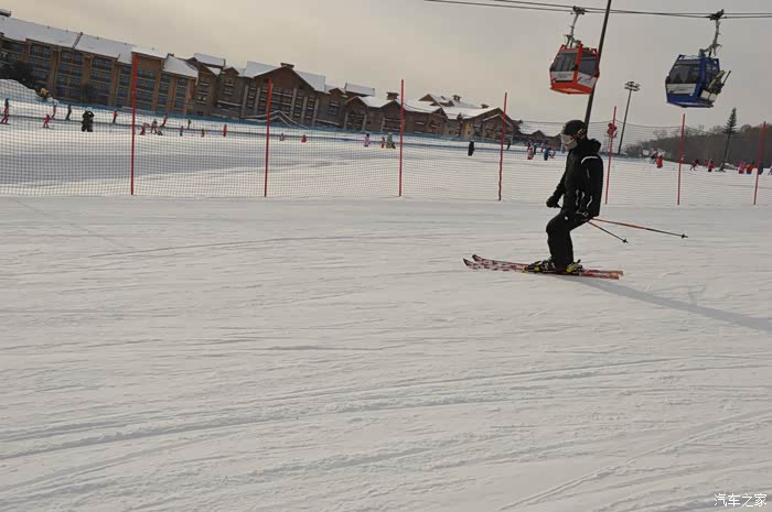 在国内滑雪有个好处是,国内滑雪者以初级居多,八成以上的人都是留在魔毯区和最简单的两条绿道上初尝滑雪。S索道那边的黑道是全场最富挑战性的。雪场高出海平面1640米至1820米,这里的雪质非常接近法国及意大利北部地区的雪,雪场自然条件非常好,风景优美。