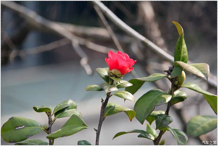 楚河岸边欣赏路边的茶花。