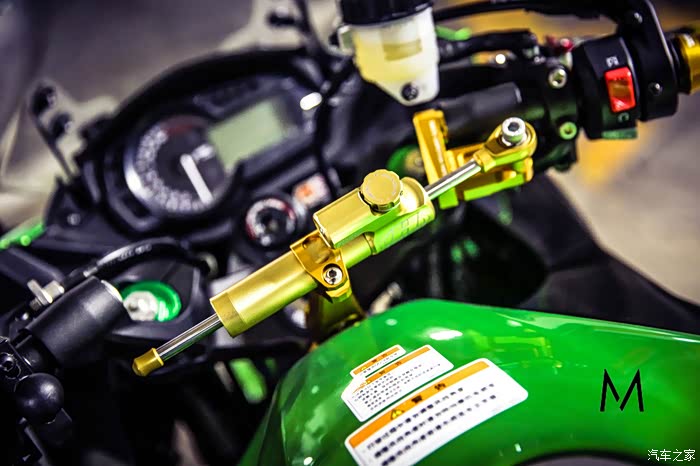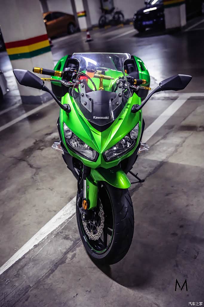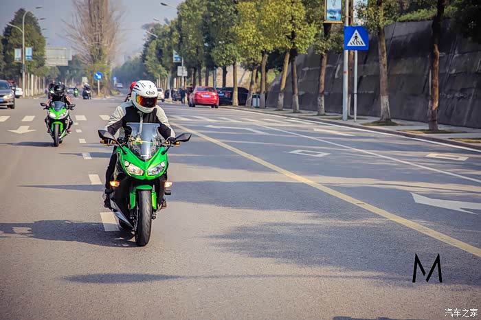 感觉整车重心很低,车子非常稳定扎实的感觉,轮胎宽了之后压弯非常给力,感觉比小忍者稳定了很多,再也没有了那种飘飘的感觉,低速行车稳定了很多,现在脚都很少点地