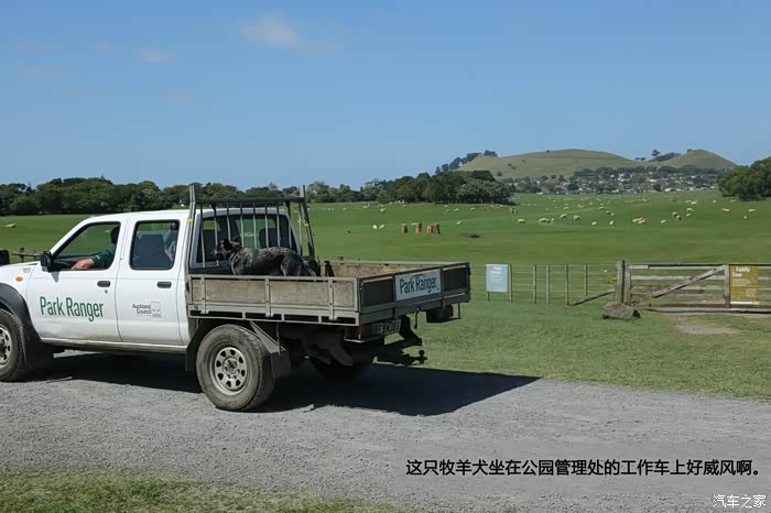 这只牧羊犬坐在公园管理处的工作车上好威风啊。