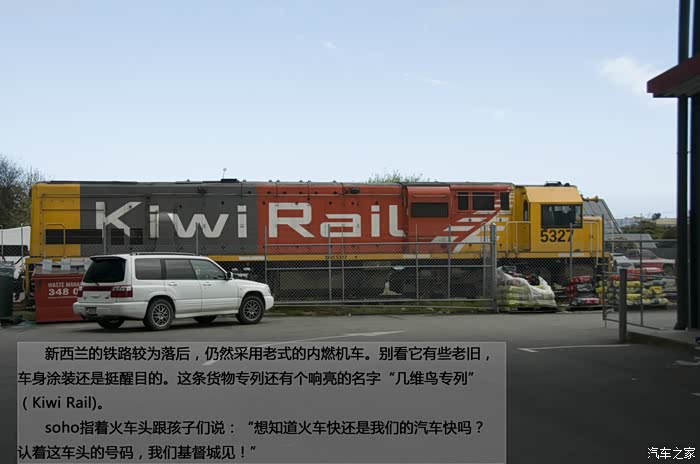 soho指着火车头跟孩子们说:“想知道火车快还是我们的汽车快吗?认着这车头的号码,我们基督城见!”
