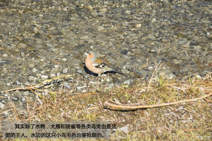 其实除了水鸭,大雁和斑雀等各类鸟类也是这里的主人。水边的这只小鸟毛色也够抢眼的。