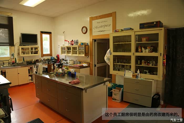 这个员工厨房很明显是由药房改建而来的。