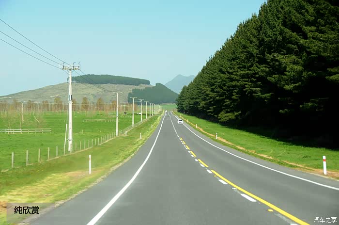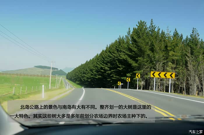 北岛公路上的景色与南岛有大有不同。整齐划一的大树是这里的一大特色。其实这些树大多是多年前划分农场边界时农场主种下的。