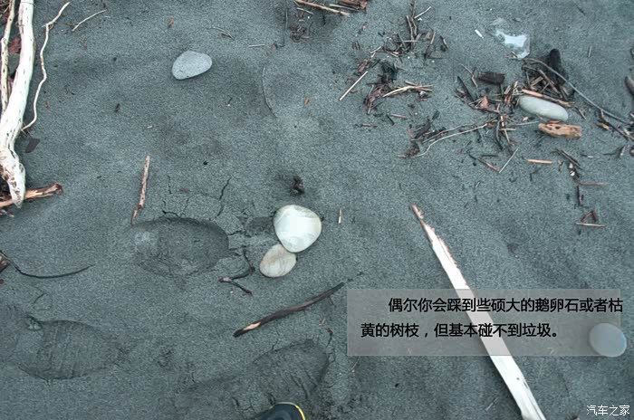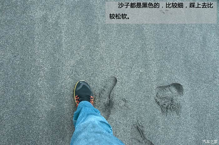 沙子都是黑色的,比较细,踩上去比较松软。