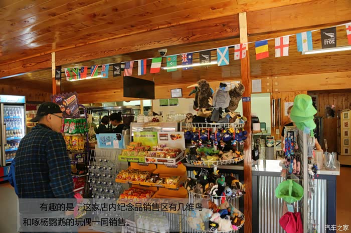 有趣的是,这家店内纪念品销售区有几维鸟和啄杨鹦鹉的玩偶一同销售。