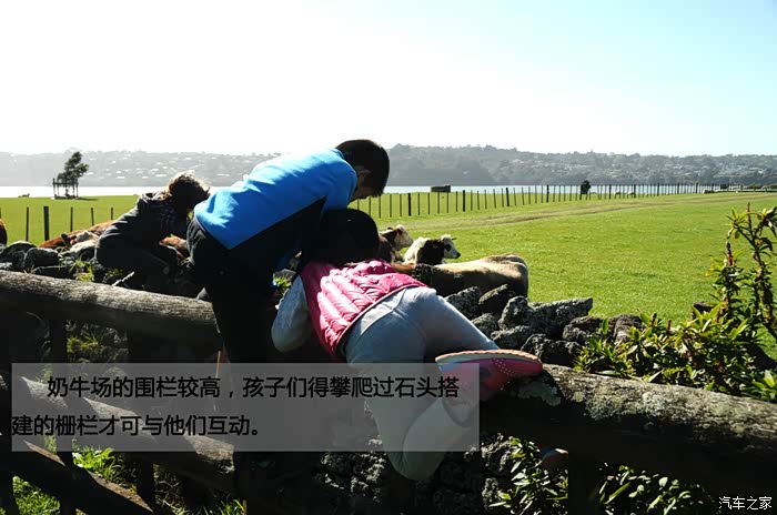 奶牛场的围栏较高,孩子们得攀爬过石头搭建的栅栏才可与他们互动。