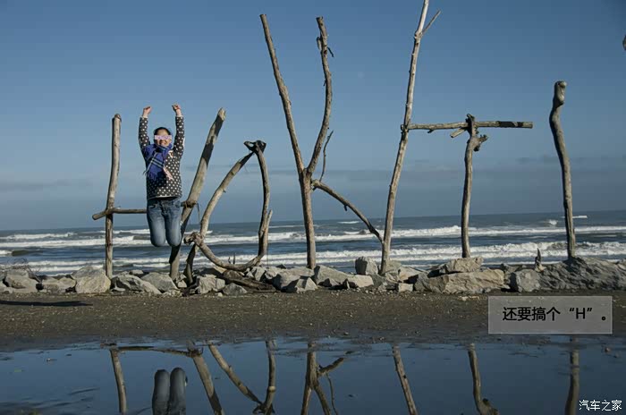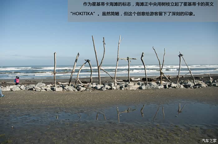 作为霍基蒂卡海滩的标志,海滩正中央用树枝立起了霍基蒂卡的英文“HOKITIKA”。虽然简陋,但这个创意给游客留下了深刻的印象。