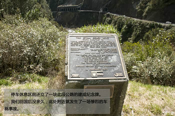 停车休息区前还立了一块此段公路的建成纪念牌。