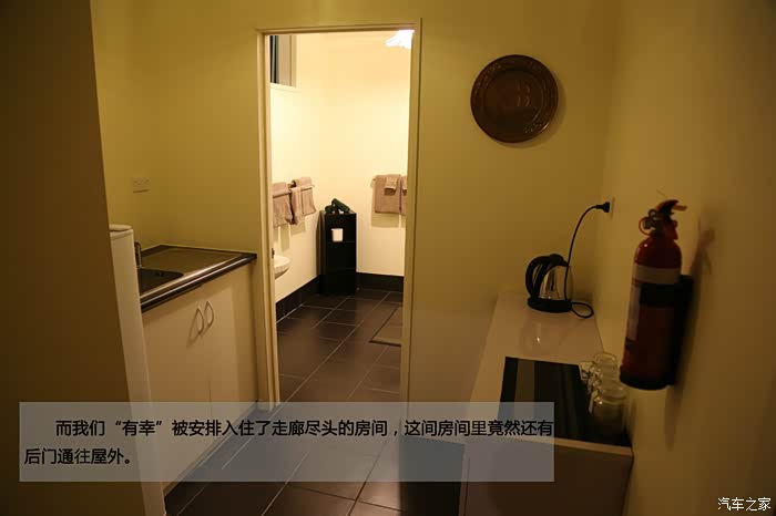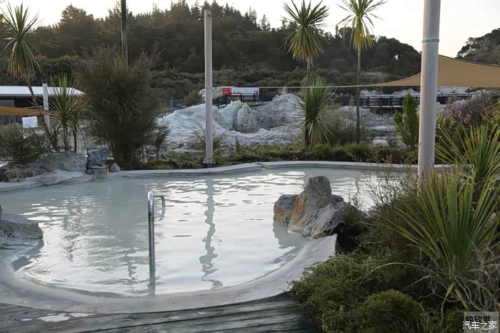 右手边的门是通往温泉的门。门口装饰城当地毛利人的图腾摸样。