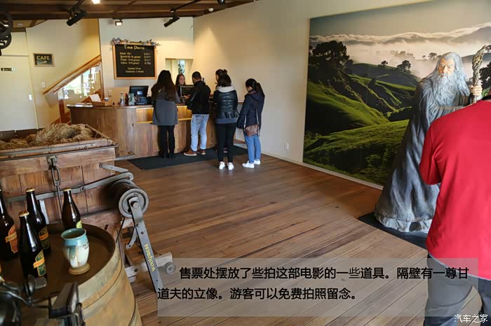 售票处摆放了些拍这部电影的一些道具。隔壁有一尊甘道夫的立像。游客可以免费拍照留念。