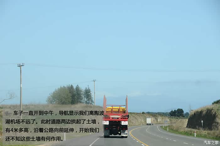车子一直开到中午,导航显示我们离陶波湖机场不远了。此时道路两边拱起了土墙,有4米多高,沿着公路向前延伸,开始我们还不知这些土墙有何作用。