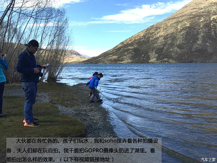 大伙都在各忙各的。孩子们玩水,我和soho摆弄着各种拍摄设备,夫人们却在玩自拍。我干脆把GOPRO摄像头扔进了湖里。看能拍出怎么样的效果。(以下有视频链接地址)
