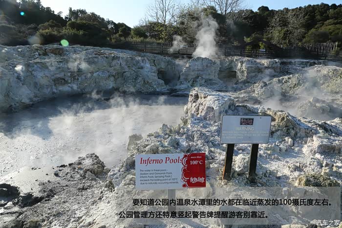 要知道公园内温泉水潭里的水都在临近蒸发的100摄氏度左右。公园管理方还特意竖起警告牌提醒游客别靠近。
