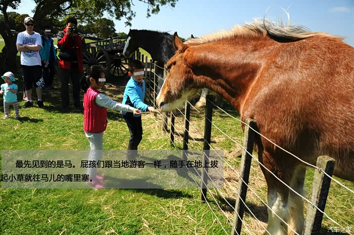 最先见到的是马。屁孩们跟当地游客一样,随手在地上拔起小草就往马儿的嘴里塞。