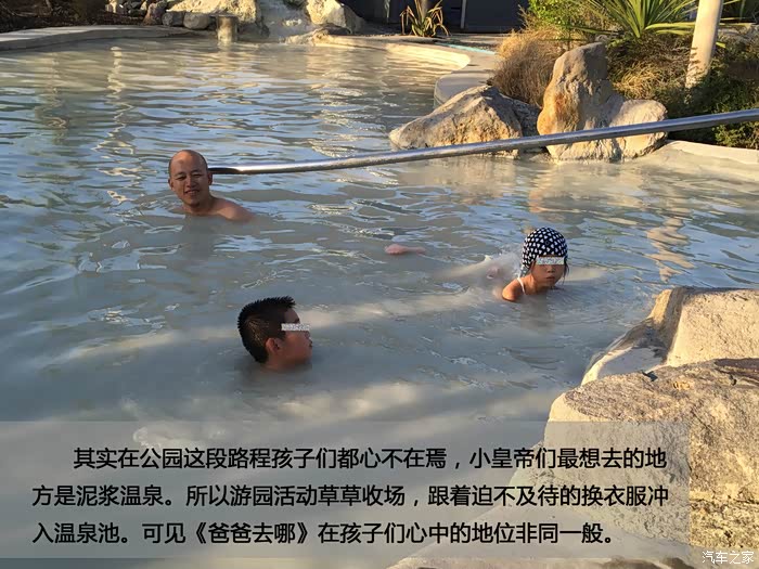其实在公园这段路程孩子们都心不在焉,小皇帝们最想去的地方是泥浆温泉。所以游园活动草草收场,跟着迫不及待的换衣服冲入温泉池。可见《爸爸去哪》在孩子们心中的地位非同一般。