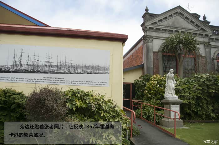 旁边还贴着张老照片,它反映1867年霍基蒂卡港的繁荣盛况。