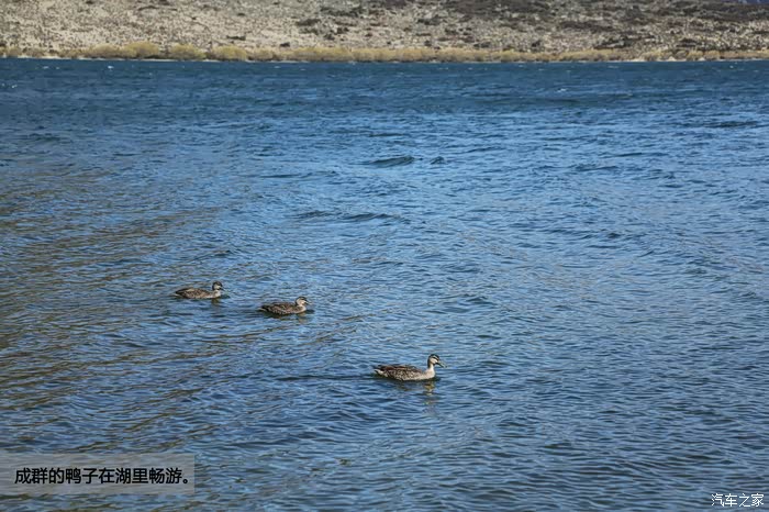 成群的鸭子在湖里畅游。