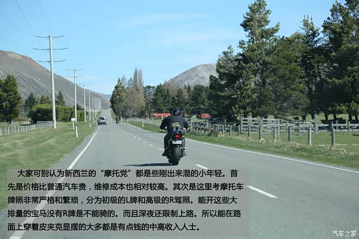 大家可别认为新西兰的“摩托党”都是些刚出来混的小年轻。首先是价格比普通汽车贵,维修成本也相对较高。其次是这里考摩托车牌照非常严格和繁琐,分为初级的L牌和高级的R驾照。能开这些大排量的宝马没有R牌是不能骑的。而且深夜还限制上路。所以能在路面上穿着皮夹克显摆的大多都是有点钱的中高收入人士。