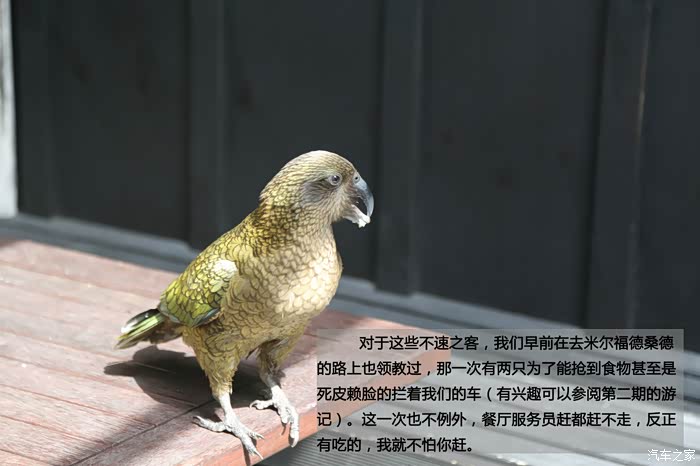 对于这些不速之客,我们早前在去米尔福德桑德的路上也领教过,那一次有两只为了能抢到食物甚至是死皮赖脸的拦着我们的车(有兴趣可以参阅第二期的游记)。这一次也不例外,餐厅服务员赶都赶不走,反正有吃的,我就不怕你赶。