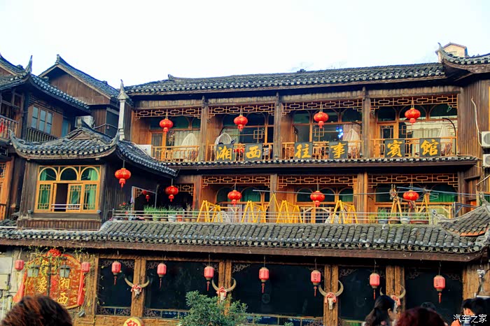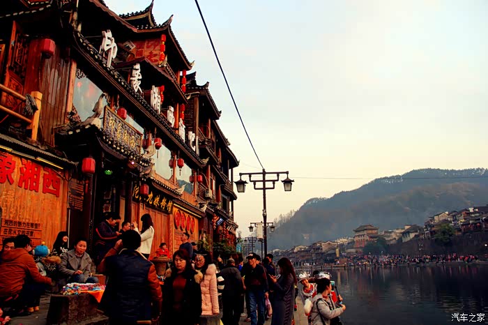 进入县城,感觉到浓厚的年味,大年初二,路边很多身穿苗族服饰的当地居民询问停车、吃饭、住宿,边城的广告牌异常醒目,这座因文学巨匠沈从文的《边城》而风靡全国的古城,正在张开怀抱,等待着大家的到来