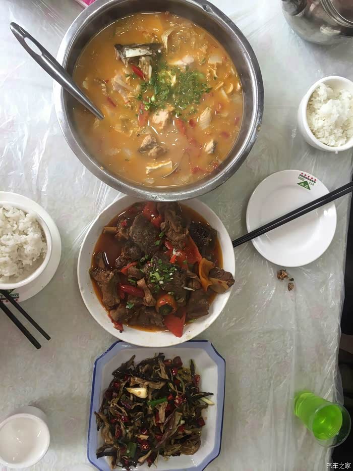最后是在大使饭店解决的温饱问题,点了酸汤鱼和血粑鸭,炒野菜,米酒伺候!