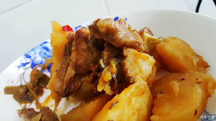 ▲取出来装盘,土豆烧羊排……虽说是红味,但是加的辣椒都是很少很少的,所有不存在辣的问题