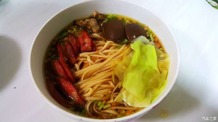 ▲阳春面总少不了一些绿叶的点缀,哎呀可惜了,没有飘儿白或者小白菜,就一匹莲花白凑合吧……荤素搭配样样好,来自于自家厨房的豪华版阳春面,就是如此了……