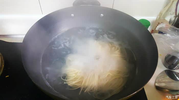 ▲煮面,其实我倾向于拿新鲜的面,放入水中烫熟就可,而干面总有些硬,口感偏差了……