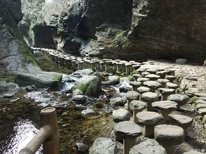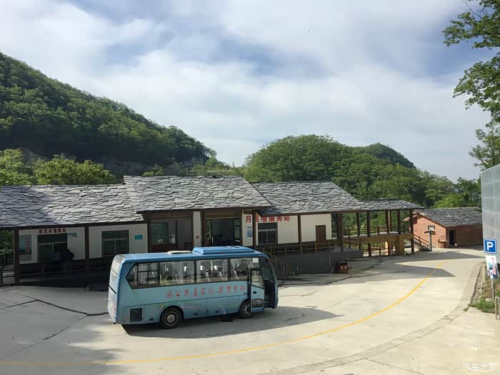 到这个月亮垭徒步下车开始向上爬 坐索道的继续做大巴往下开去