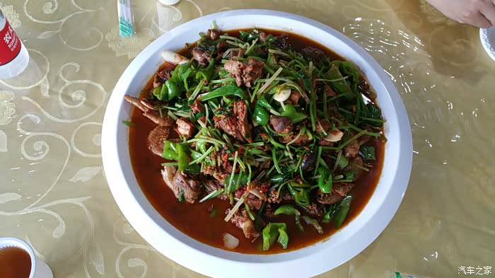 行程第一天,17.30分飞机准点降落地窝堡机场,t1航站楼前行60米机场宾馆取车,十分钟办完手续。说明一下因预订的名爵上一位顾客发生事故无法使用,租车公司免费升级东风标致3008,实际租价应该比名爵贵100元每天,不过只要不耽误行程就可以了,车型倒无所谓,打开导航直奔第一天目的地奎屯,路过沙湾县特地去吃了沙湾大盘鸡,在大盘鸡一条街的刘氏爆炒小公鸡,香菇大盘鸡一份,素炒青菜两盘,消费120元,口味很好,老板娘是四川人。