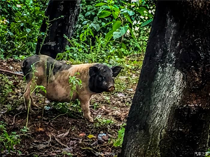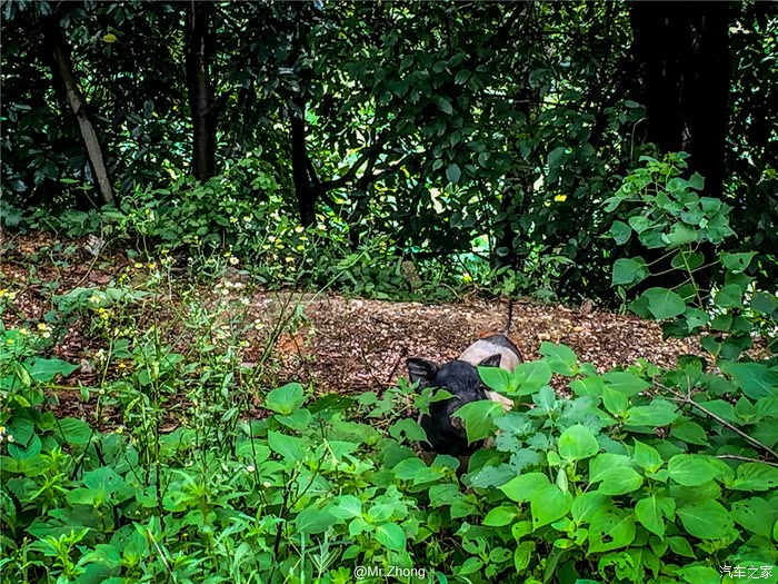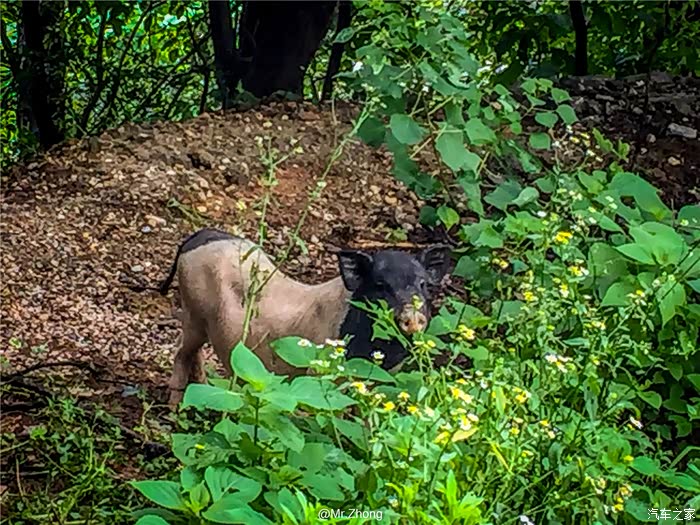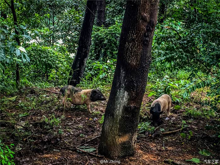 不知道以为是野猪,后面看到一群!应该是放养的!不知道是不是宁乡花猪的品种!