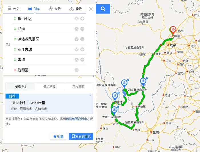 - 行程7: 西昌—德阳,6小时,518.4公里,路费290。   原路返回