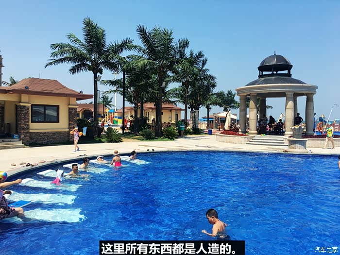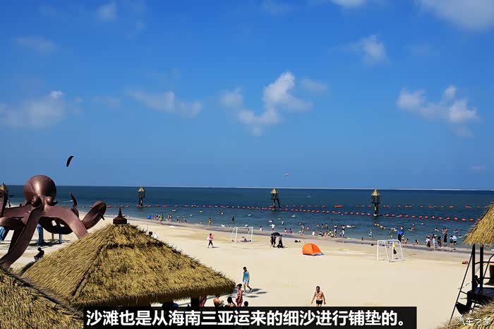 家海岸线,以及原版移植海南沙滩柔软细白沙而建造形成的“水清、沙白、椰林树影”的人工沙