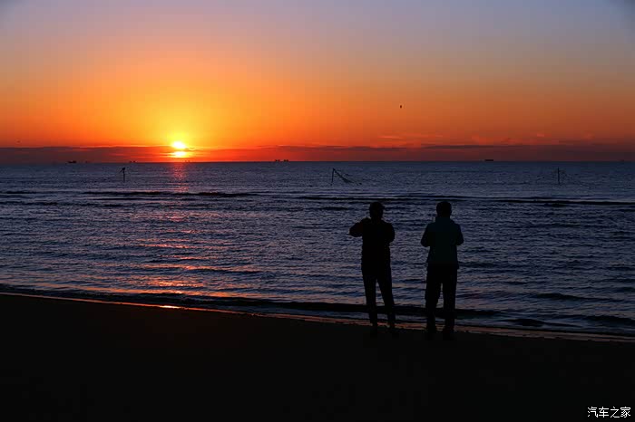 晚上一阵狂风暴雨成就了第二天的晴朗天气,早上在海边拍了几张海上日出!日头黏黏的从海里钻出来!金色的阳光照在沙滩、照在木屋、照在大船上,感觉还是不错的!