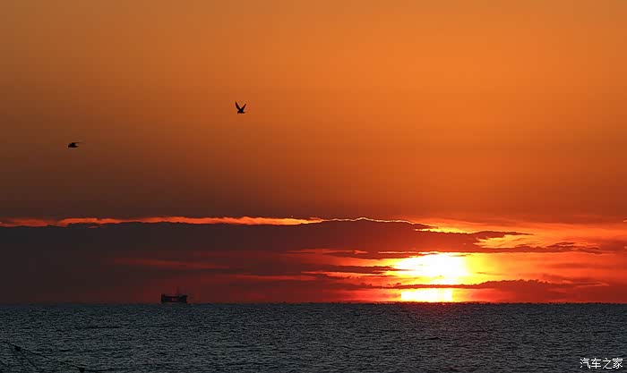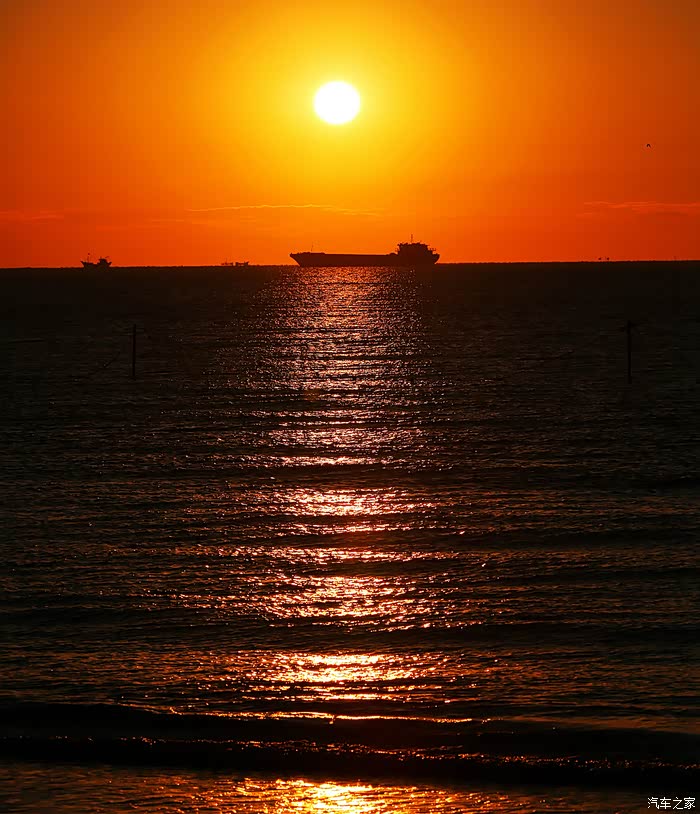 一艘货轮驶入了我的镜头!演绎了巨轮映日的壮观场景
