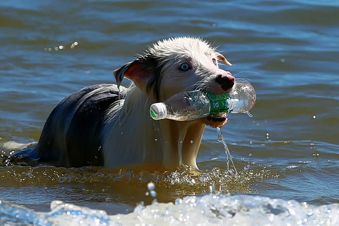 不是它知道环保!是在配合主人玩抛瓶训练!阿旺很卖力,呵呵~