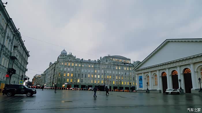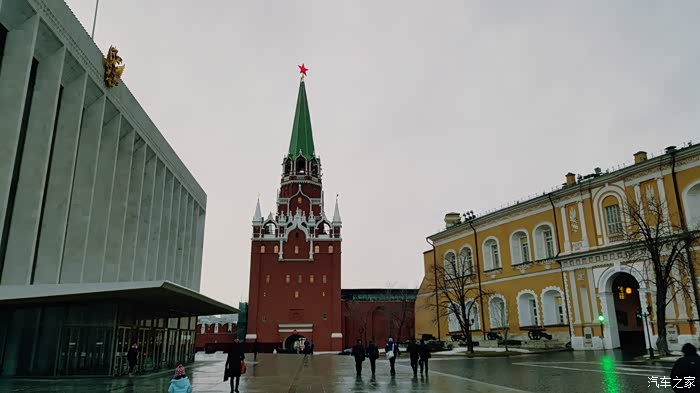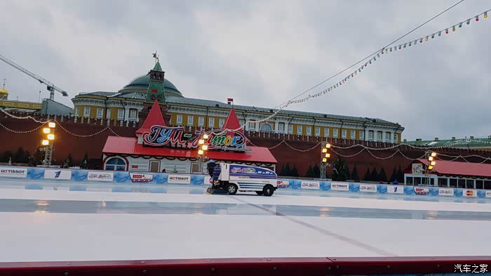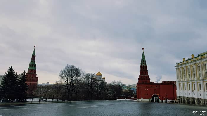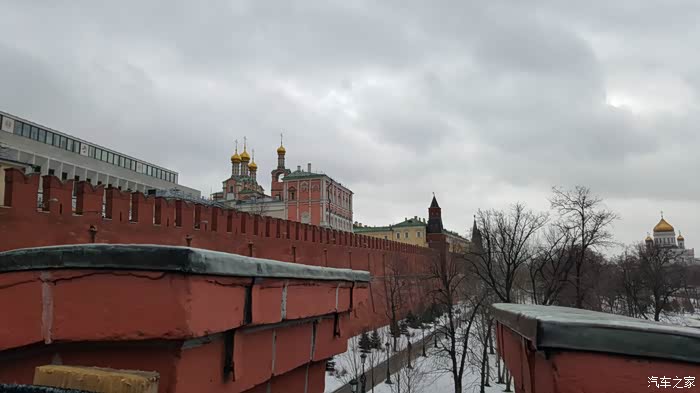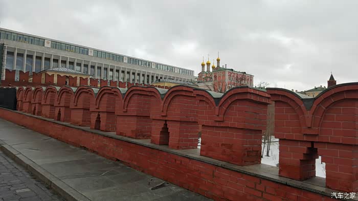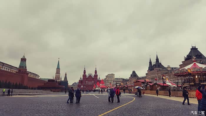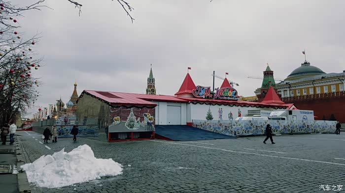 2月初,雨雪天气的红场一角(不是咱们想象的那样冰天雪地,主城和诸如红场这样的重要地段是没有积雪的,因为每天都用除雪扫冰的机器,车辆循环工作,消除障碍,保证交通要道的畅通)。