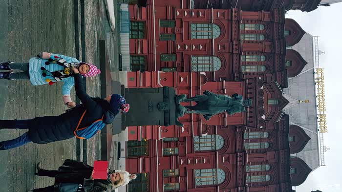 还是LD体贴,给孩子整理衣帽,朱可夫将军雕像背后就是国家历史博物馆。