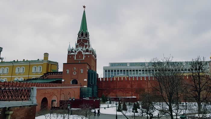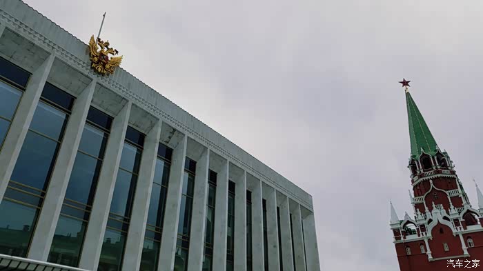 宫墙左右两边对称耸立着斯巴斯基塔楼和尼古拉塔楼,双塔凌空,异常壮观。