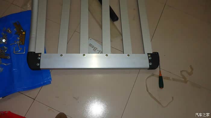 全部安装完毕,调整好位置,到这里行李架组装完毕,开始与车顶横杆连接!↓