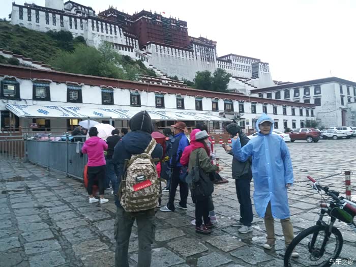 第十四天:八廓街——大昭寺——西藏博物馆    今天是进藏以来最舒服的一天,早上6;30才起床,出发去布达拉宫预约门票,到了布达拉宫,前面有50人在排队买票,但经常有人来插队,这些插队的人前后都有票贩子在排队,到8;30分2个窗口才开始预约门票,这时候队伍很长了,我预约到明天早上9点多的,门票预约好,回宾馆吃早饭,今天行程轻松的,所以休息了一会,和儿子去八廓街,大昭寺七点不到,前面排队的人不多,可能和天气有关吧,下着小雨,那辆自行车是票贩子排队工具,排队过程中陆续有人插队进来,票贩子可以给你们插队,前提是你付钱或者帮他们带票