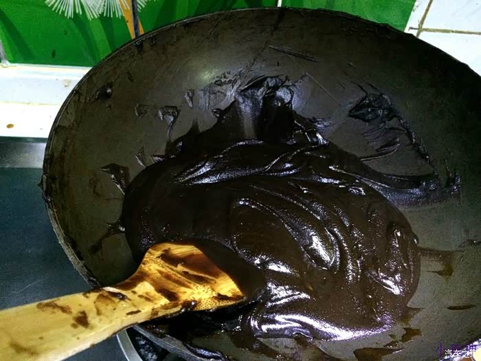 3、将过滤后的枣浆放入干净的大勺中,大火烧开,转小火不停搅拌,熬制去除水份