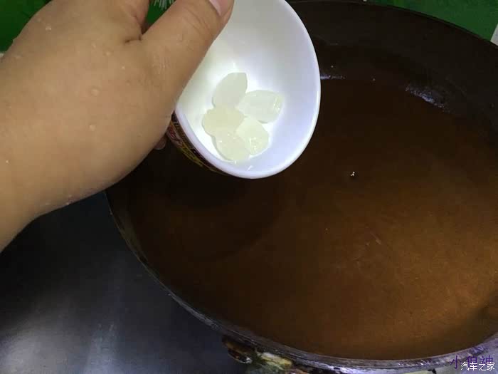 4、熬制中加入冰糖,不停搅拌直至干稠,搅不动,枣浆成枣泥状,即完成