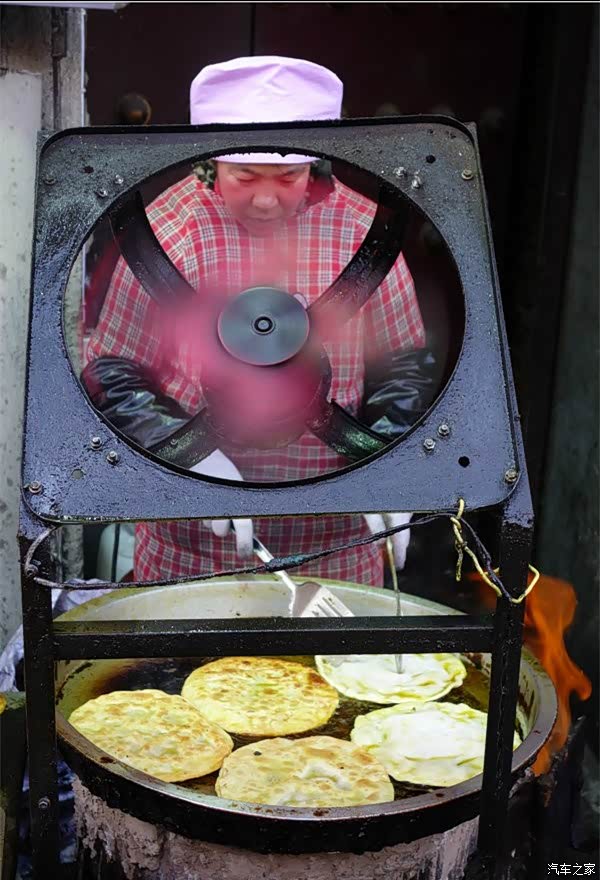 回民街里的特色排油烟机,直接把油烟馈赠给过路的游客们。
