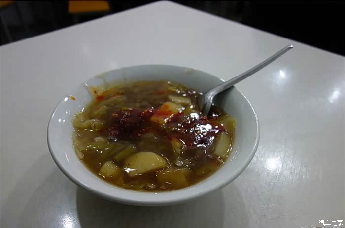 来个小碗的解解馋,一勺辣子是必须的!这玩意儿应该再来个白吉馍,掰碎了泡进去,不过我还是留着点肚子吧。