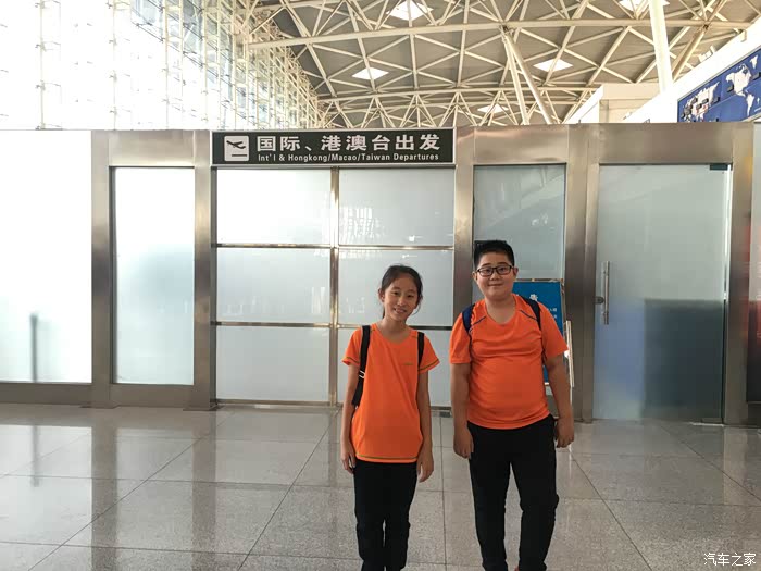 顺利到达机场,在等待过安检,趁着人不多,赶紧给俩孩子拍一张。