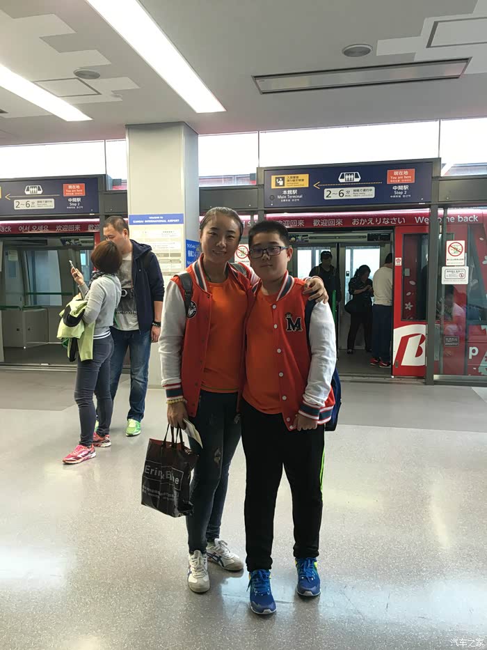 在这里集合下准备乘坐摆渡车去取行李,儿子快赶上我高了。